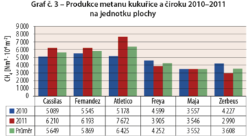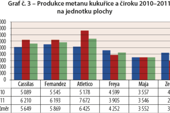 Pri mernej produkcii metánu 288 Nm3 / t siláže to predstavuje produkciu v rozmedzí 4 608-5 184 Nm3 / ha.