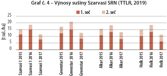 V podmienkach SR bol Szarvasi testovaný JČU, výsledky výnosov 3-ročného pokusu sú v grafe č. 5.