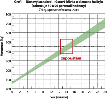 Pri posudzovaní správnej doby pre prvú zapustenie jalovíc nesledujte len požadovaný vek zvierat, ale zamerajme sa na dosiahnutie adekvátnej hmotnosti a predovšetkým rámca - výšky zvierat, čo je pre zhodnotenie telesného vývoja jednoznačne vhodnejšie parameter.