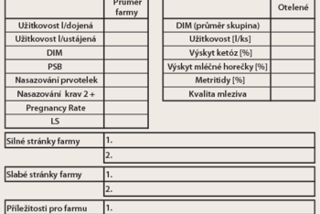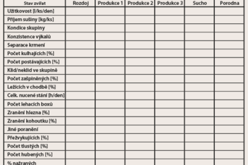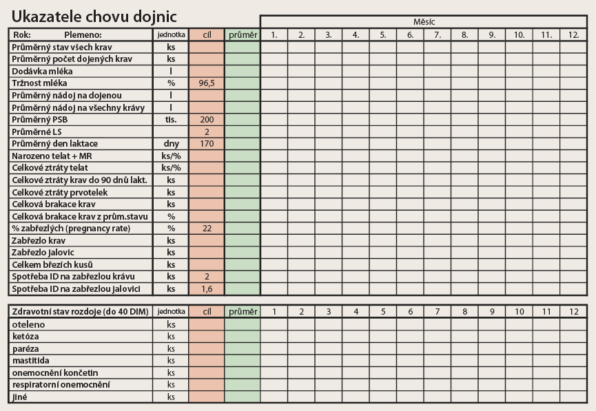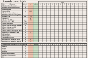 Druhá časť je zameraná na zber a vyhodnocovanie zootechnických dát o danom chovu. Možno využiť aktuálne dáta z dojírenského programu, z kontroly úžitkovosti i plemenářská dáta. Výborným zdrojom týchto údajov o chove je internetová aplikácia ČMSCH Milk Profit Data. Na prípravu dát k ľahšiu analýzu sme vytvorili tabuľku, ktorú podľa priania našich zákazníkov optimalizujeme priamo na individuálne potreby každej farmy (Tab. - Ukazovatele chovu dojníc).