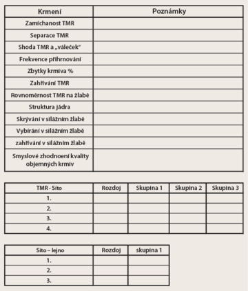 Pre lepšiu prehľadnosť sme náš servis rozdelili na dve pomyselnej polovice. Ako som už uviedol, prvá časť pozostáva zo zberu dát v teréne, ktorú vykonáva náš špecialista. Pre túto časť sme v spolupráci s našimi i zahraničnými odborníkmi vypracovali presný postup. Pre zaistenie dlhodobého štandardu máme vypracované pracovné listy (pozri tabuľky), ktoré pomáhajú našim poradcom - špecialistom v správnom postupe. Všetky potrebné sledovanie a hodnotenie je vždy dôležité oprieť v maximálnej miere o dáta získané objektívnym meraním. Preto sú naši terénni pracovníci vybavení mnohými pomôckami. Všetka tieto merania a posudzovania pri návšteve nášho špecialistu je zameraná na stajňa a zvieratá, dojáreň, kŕmne žľaby, vlastné kŕmenie, správanie kráv, ustajnenie, walfare, manažment a mnoho ďalšieho. Všetko je zhrnuté v prehľadnej tabuľke pre neskoršiu analýzu.