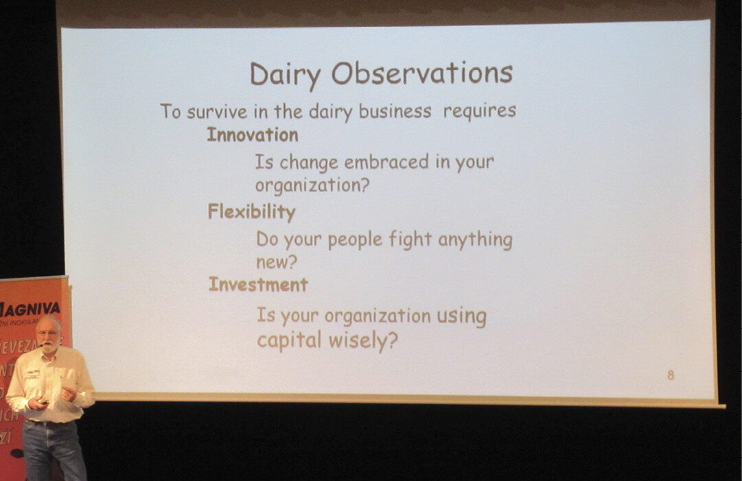 Vo februári tohto roku sme v spolupráci s firmou Zoetis a Delaval strávili týždeň s jedným s najväčších odborníkov na dojárne Dr. Davidom A. Reidom. Americký veterinárne špecialista na technológie, techniku a manažment dojenie je uznávaným školiteľom a poradcom mliekarní, chovateľov a veterinárnych lekárov v mnohých krajinách sveta (napr. USA, Kanada, Anglicko, Španielsko, Čína, Austrália, Rusko). Vedie webináre s problematikou dojární na americkom webe Hoard 's Dairyman. V rokoch 2013-2014 bol prezidentom prestížneho National mastitis Council v USA.